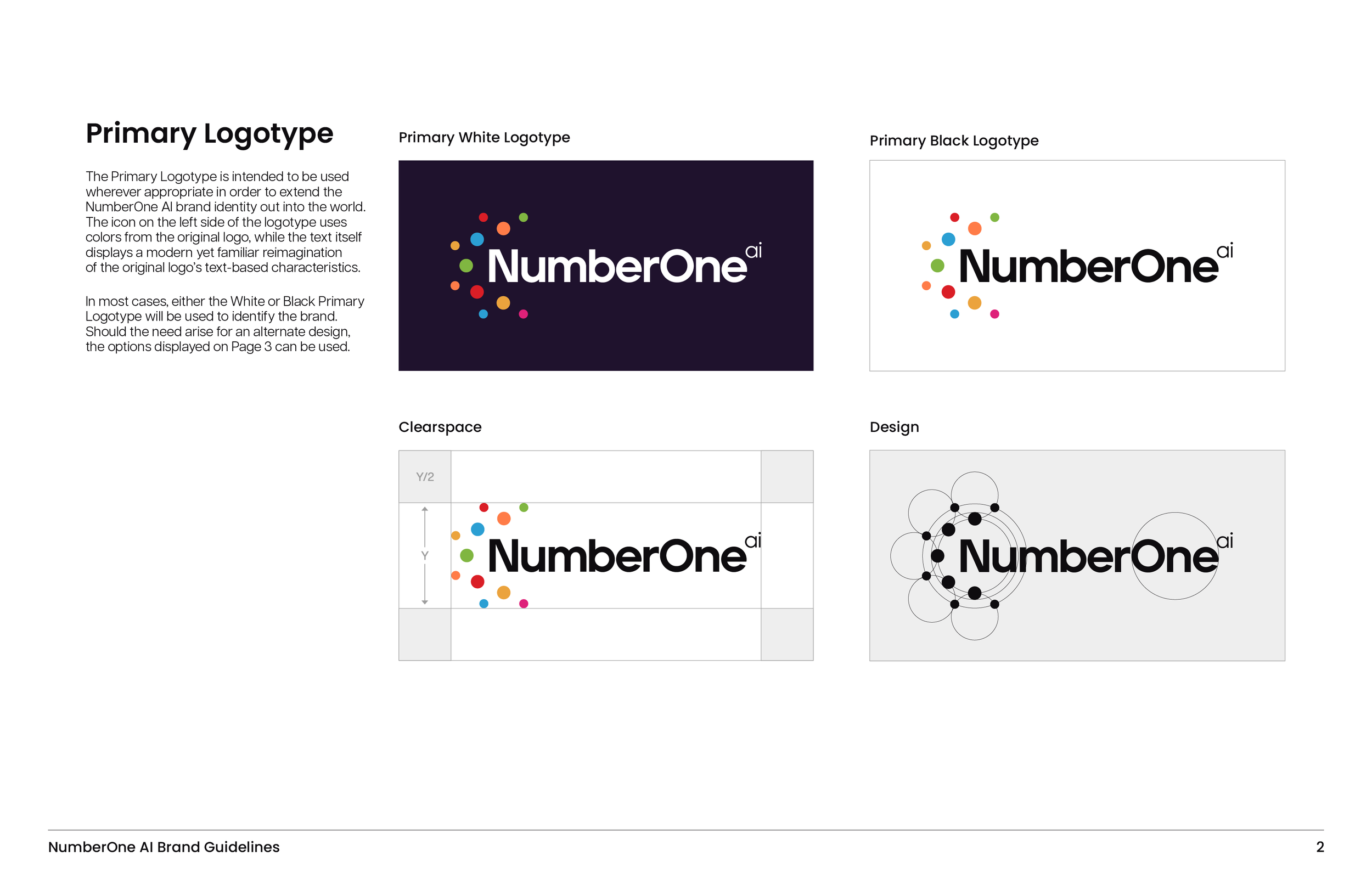 NumberOne AI is a Newport Beach–based tech incubator that uses an automated AI/ML platform to launch new ventures. I joined the company in March 2024, and as part of the hiring process I developed a refreshed brand identity. The goal was to retain the existing color palette while introducing a more modernized look and feel.
